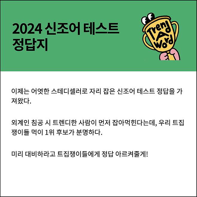 오늘은 2024 신조어 테스트 정답을 밝히는 날로