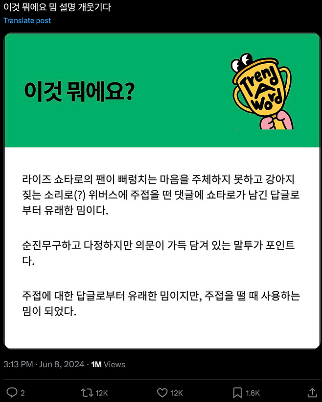참고로 이 밈 소개는 엑스에서 밈 유래 설명에 대한 극찬을 받았다는 사실!