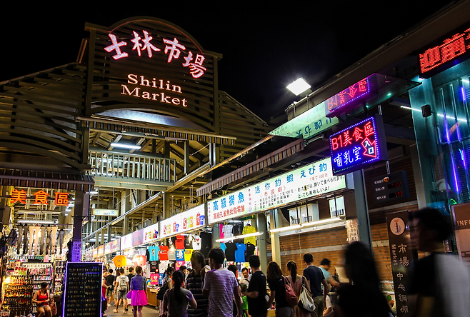 스린 야시장(士林夜市)은 대만에서 규모가 가장 큰 야시장으로 타이베이를 대표하는 관광명소다. 지상 1층과 지하 공간으로 나뉘어 있는데, 지상에는 게임장이 많고 지하에는 대규모 푸드 코트가 있다. 굴 오믈렛, 튀긴 문어볼, 찹쌀 소시지 등 먹거리를 파는 포장마차가 500개 넘게 거리에 늘어져 있다. 대부분의 먹거리가 우리 돈으로 약 2000원에서 3000원 정도다. 대만 전통 옷, 중국 차, 도자기, 각종 악세사리를 파는 다양한 잡화점도 있다. 야시장의 대표적인 볼거리는 자성궁(慈諴宮) 골목에 있는 ‘초대형 3D 아기호랑이’다. 큰 벽면에 비치는 아기호랑이가 방문객의 눈을 즐겁게 한다. 먹거리와 놀 거리가 많아 외국인 관광객은 물론이고 현지인에게도 인기가 많은 명소다.