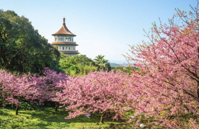타이베이 시내에서도 벚꽃의 향연은 계속됩니다. 위안산 지역은 웅장한 대만 전통 건축물인 원산대반점과 어우러진 야간 벚꽃으로 유명합니다. 화려한 조명이 벚꽃을 비추는 밤이면 도쿄 메구로 강의 야경 부럽지 않은 로맨틱한 분위기가 연출됩니다. 또한 지우펀의 벚꽃 터널길은 해질녘 홍등이 하나둘 켜질 때 방문하면 애니메이션 센과 치히로의 행방불명 속 한 장면에 들어온 듯한 몽환적인 느낌을 줍니다. 비좁은 골목을 따라 흐드러지게 핀 꽃들은 대만 특유의 빈티지한 감성을 극대화합니다.