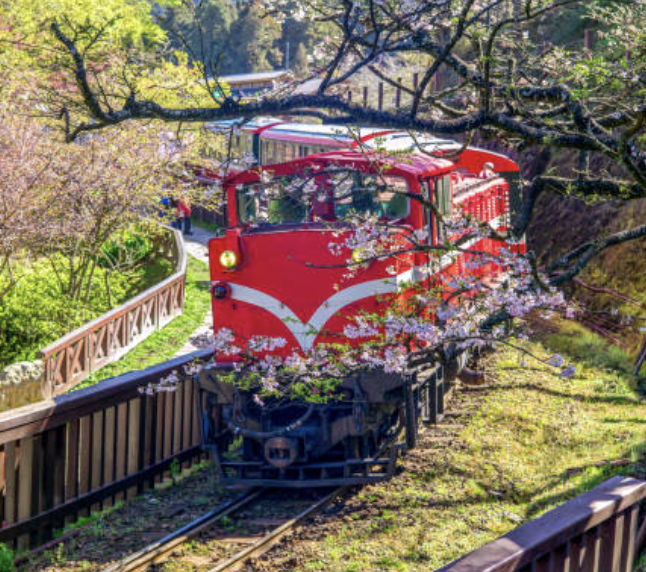 좀 더 깊이 있는 낭만을 찾고 싶다면 타이완 중부에 위치한 아리산으로 눈을 돌려야 합니다. 아리산은 고속열차와 산악 열차를 이용해 방문할 수 있는 곳으로 벚꽃과 철도가 어우러진 이색적인 풍경으로 전 세계 사진작가들의 사랑을 독차지합니다. 고속열차 패키지는 벚꽃 시즌이 시작되기도 전에 매진될 만큼 인기가 높습니다. 수백 년 된 고목들 사이로 붉은색 산악 열차가 느릿하게 지나가고 그 위로 벚꽃 잎이 비처럼 쏟아지는 장면은 워싱턴 호숫가의 풍경과는 또 다른 동양적인 신비로움을 자아냅니다. 해발 고도가 높기 때문에 평지보다 개화 시기가 늦어 4월 초까지도 여유롭게 꽃구경을 즐길 수 있다는 점이 큰 이점입니다.