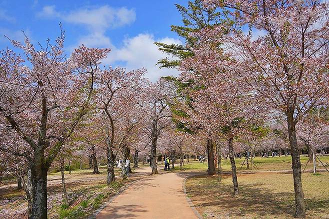 무덤으로 이어지는 산책길에는 벚나무들이 늘어서 있어, 걷는 동안 과거와 현재, 역사와 자연이 함께하는 느낌을 받을 수 있습니다.