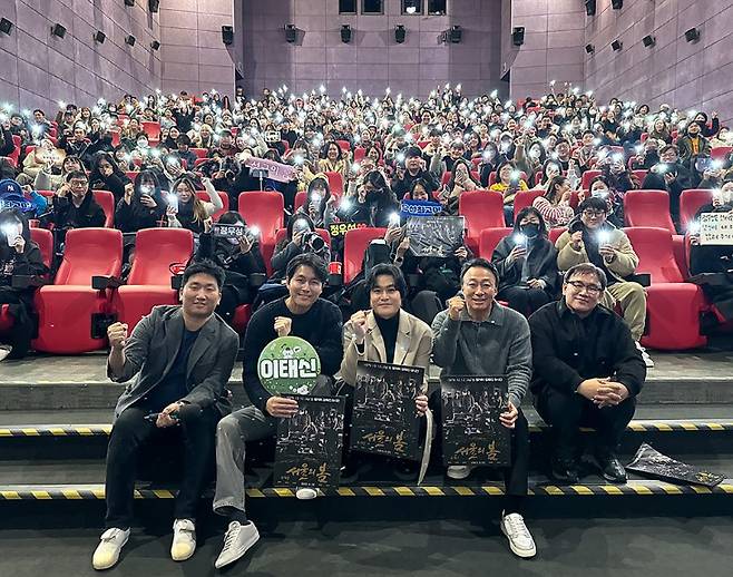 '서울의 봄' 무대인사는 영화의 흥행에 힘입어 단순히 관객에 감사 인사를 건네는 차원을 넘어 하나의 '인기 이벤트'가 됐다. 출연 배우가 워낙 많다보니 반란군 대 진압군 구도로 진용을 짜고 관객에게 무대인사 자체를 하나의 볼거리로 제공하고 있다.