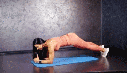 팔꿈치를 매트에 대고 플랭크 자세로 엎드립니다. 엉덩이를 오른쪽으로 천천히 이동했다가 원위치로 돌아오고, 다시 왼쪽으로 이동하며 반복합니다.