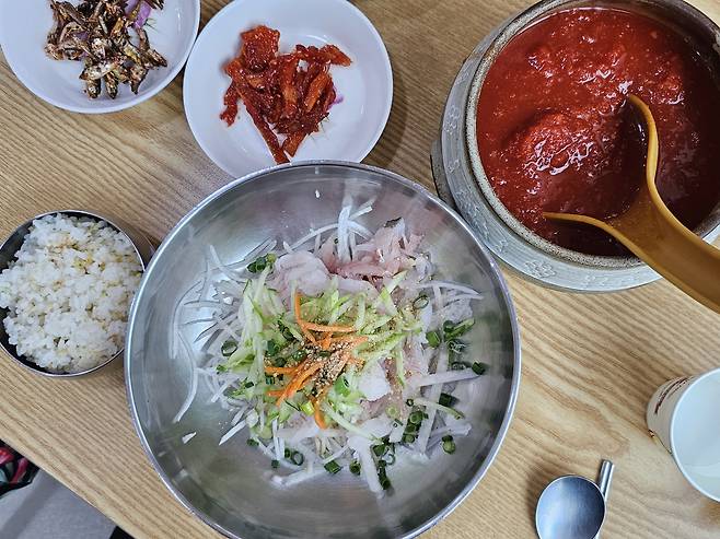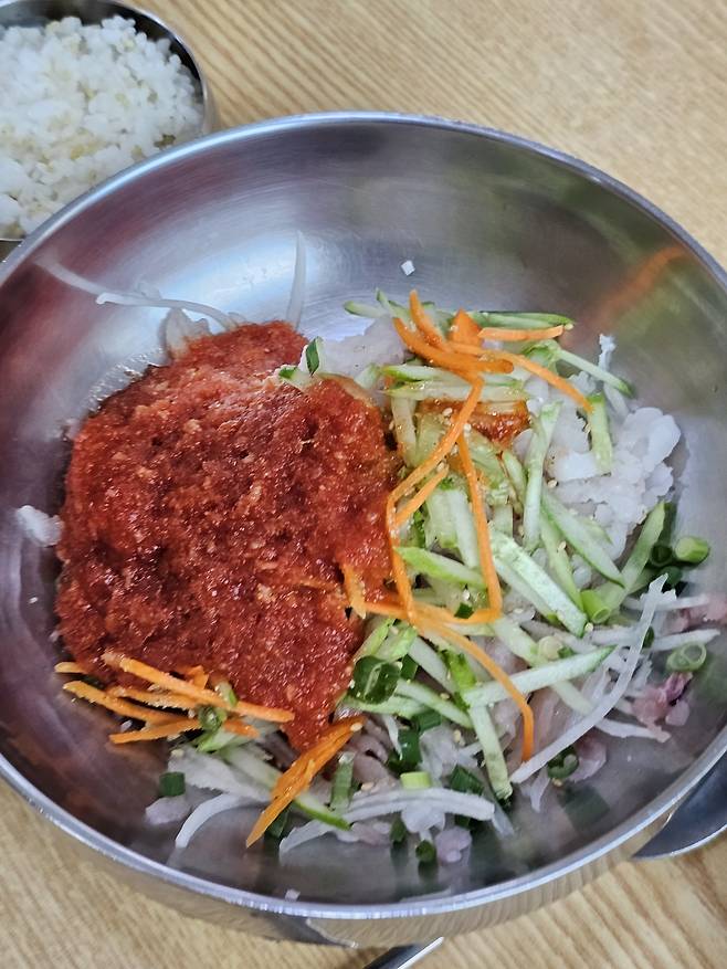 동해의 아름다운 바닷가 마을 묵호에 있는, 수많은 물회 식당 중에서도 진짜 제대로 하는 찐 물회전문점입니다. 물회 한그릇 13,000원인데 회가 많아서 완전 감동했어요.