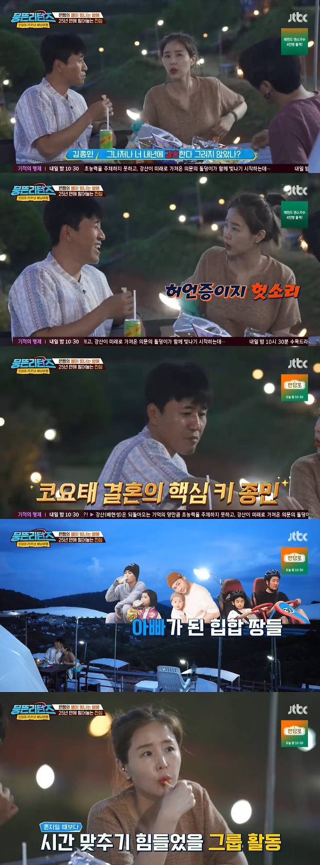 7월 18일 방송된 JTBC '뭉뜬 리턴즈'에는 데뷔 25주년을 기념해 태국으로 첫 완전체 여행을 떠난 코요태 김종민, 신지, 빽가의 마지막 여정이 그려졌다.