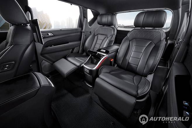 렉스턴 써밋의 또 다른 변화는 퍼스트 클래스 급 2열 공간이다. 최상급 2열 프리미엄 천연가죽 독립 시트는 140도 리클라이닝, 16.8cm 슬라이딩과 언더서포트 기능이 적용돼 항공기 일등석에 탑승한 것과 같은 편안한 자세로 휴식을 취할 수 있다. 또한 2열 냉장고, LED 실내등 & 독서 등, 동반석 1열 시트 컨트롤러, 휴대전화 무선충전기, 컵홀더 등 다양한 기능을 제공한다.
