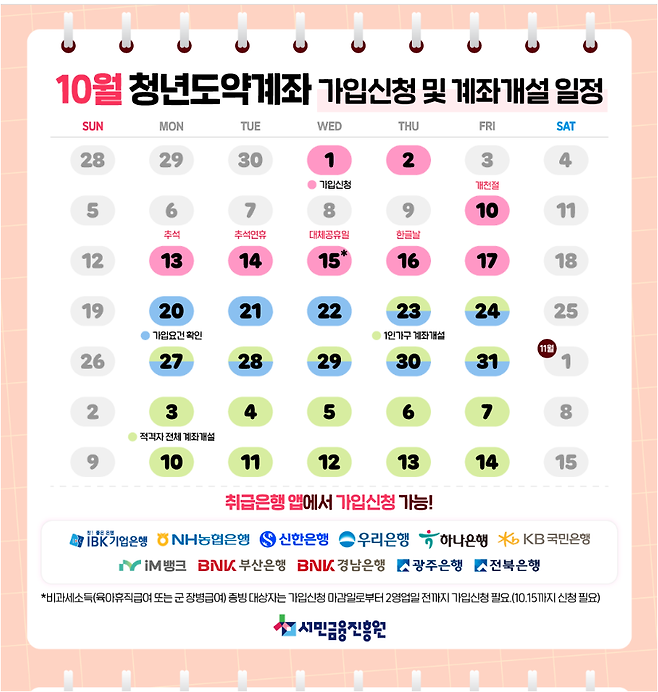 이 조건에 해당하면 국민은행, 하나은행, 우리은행 등 시중은행 앱을 통해 비대면으로 신청할 수 있으며, 가입 후 서민금융진흥원의 자격심사를 거쳐 계좌가 개설됩니다.