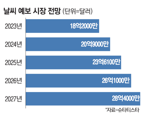 빅테크 기업이 날씨 산업에 관심을 가진 것은 시사하는 바가 크다. 일기예보가 공공서비스가 아닌 향후 수익원이 되는 서비스로 자리를 잡을 가능성이 높다고 보고 있는 것이다.