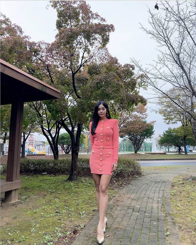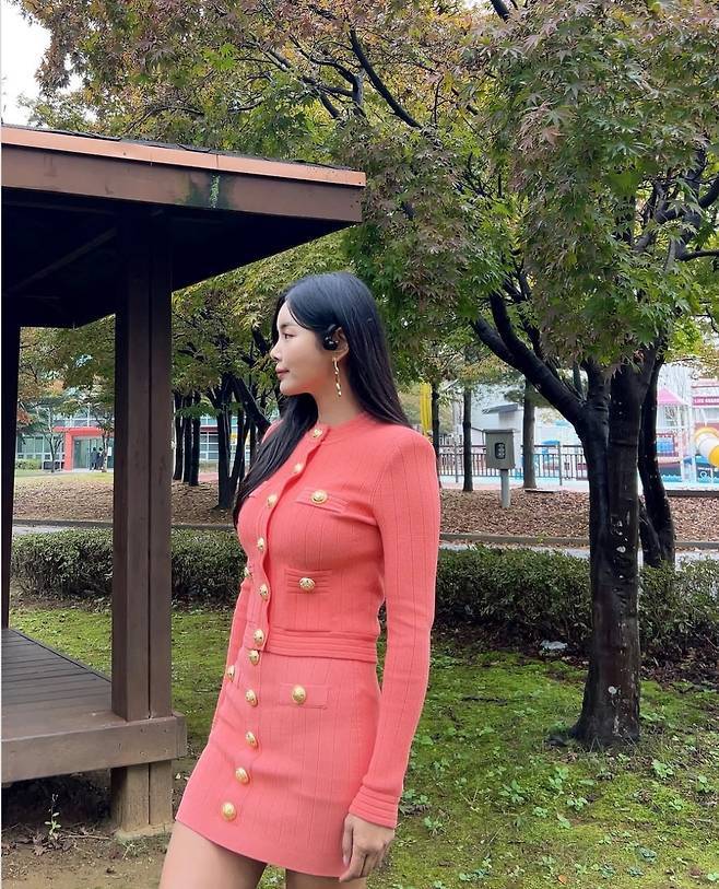 조정민이 강렬한 핫핑크 미니 셋업으로 고혹적인 매력을 뽐냈습니다.