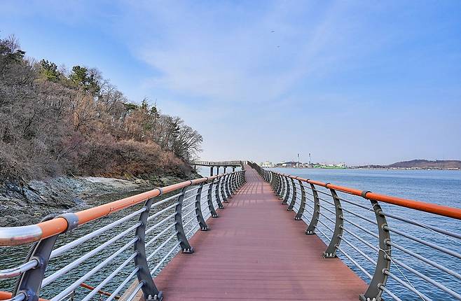 이곳의 백미는 바다 위로 길게 뻗은 해안 데크 산책로다. 한진포구에서 시작해 고대지구 근린공원까지 해안선을 따라 약 700m 이상 이어지는 데크길은 누구나 편하게 걸을 수 있도록 조성돼 있다. 시린 바닷바람이 뺨을 스치지만, 그 끝에서 마주하는 서해의 탁 트인 풍경은 오히려 마음을 가볍게 만든다.
