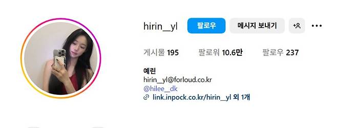 • 박예린 (Park Ye-rin): @hirin_yl (팔로워 10.6만)