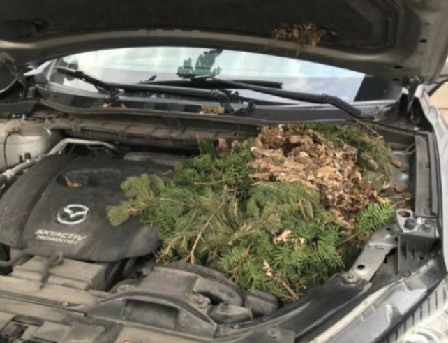 나뭇가지와 이끼로 가득 찬 보닛 안에는 놀란 어미 다람쥐와 함께, 아직 눈도 뜨지 못한 4마리의 아기 다람쥐들이 조용히 잠들어 있었는데요. 그 모습에 케이티 씨는 자신도 모르게 숨을 멈췄습니다.