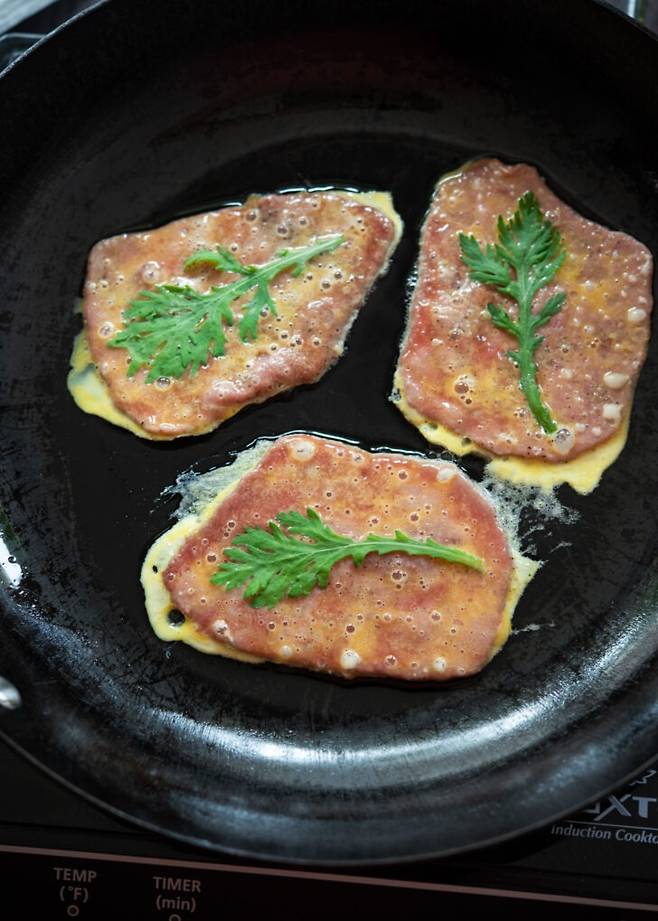 육전은 그대로 먹어도 좋지만 활용도가 높다. 쪽파나 무순, 채소를 곁들여 돌돌 말아내면 한입 크기의 고급스러운 핑거푸드가 된다. 초간장에 찍어도 맛있지만 겨자 간장을 곁들이면 색다른 풍미를 느낄 수 있다.