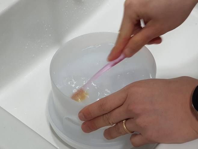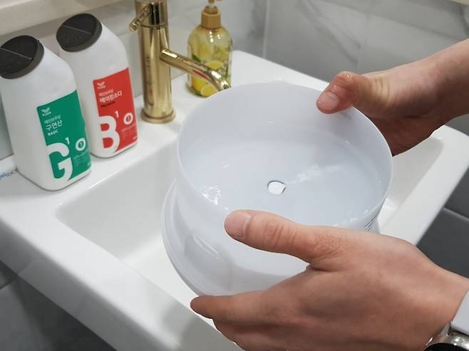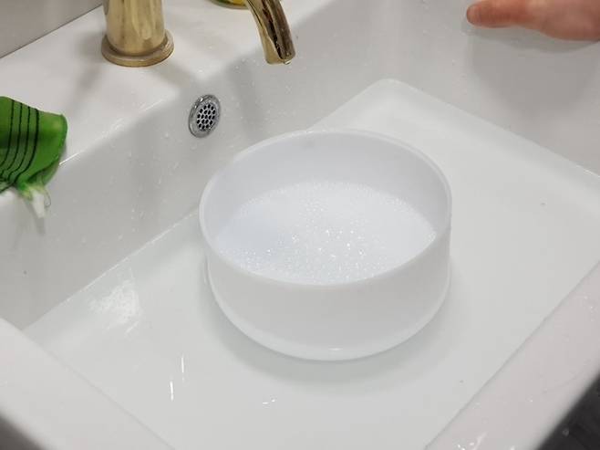 앞에서 했던 방법 그대로 하되, 커버는 부품이 없는 플라스틱 통이기 때문에 물에 담가서 두어도 된답니다!