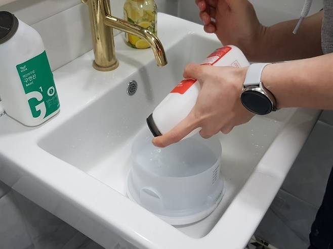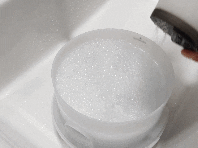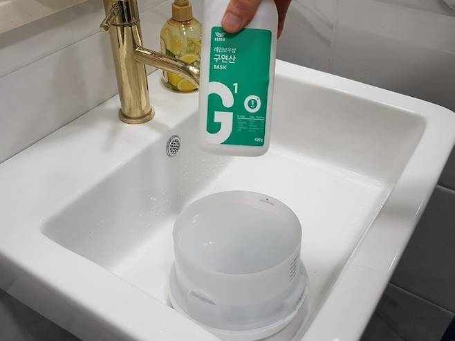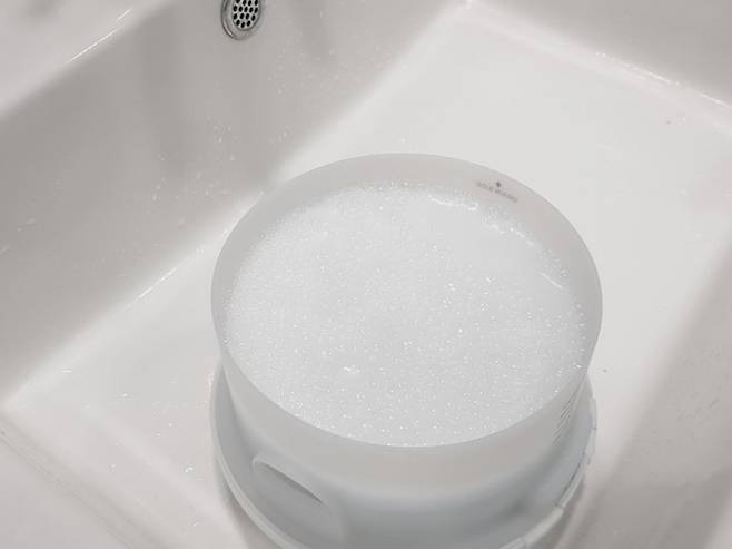 앞에서 했던 방법 그대로 하되, 커버는 부품이 없는 플라스틱 통이기 때문에 물에 담가서 두어도 된답니다!