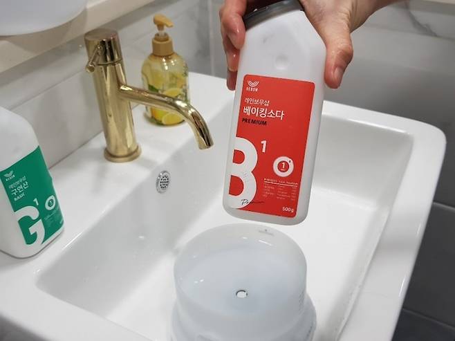 그리고 베이킹소다를 적당량 풀어줍니다.