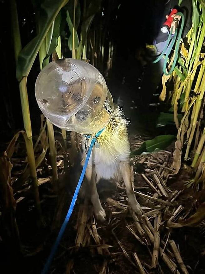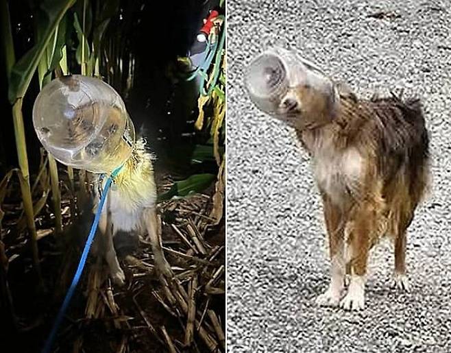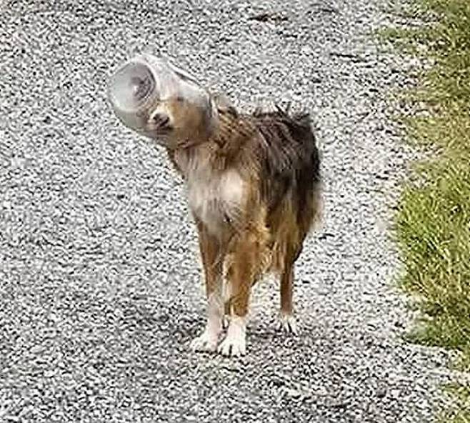 주인 없는 강아지 달라스(Dallas)는 며칠 동안 플라스틱 통이 머리에 끼인 채 돌아다니고 있었죠.