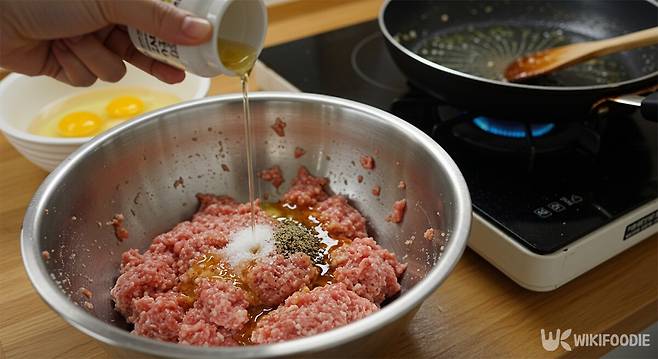 동그랑땡의 맛을 결정짓는 첫 번째 단계는 재료다. 간 돼지고기 360g과 돼지고기 지방 150g을 준비한다. 돼지고기 지방이 들어가야 동그랑땡의 속이 촉촉하고 풍미가 살아난다. 여기에 간 마늘 1큰술(20g), 진간장 3큰술(30g), 황설탕 1큰술(12g)을 넣어 맛의 밸런스를 맞춘다.