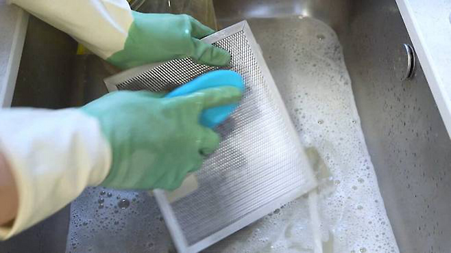 청소는 반드시 후드 전원을 끄고 필터를 분리하는 것부터 시작한다. 분리한 필터를 보면 은색이었던 표면이 갈색으로 변해 있는 경우가 많다. 그만큼 기름때가 오래 쌓였다는 신호다.
