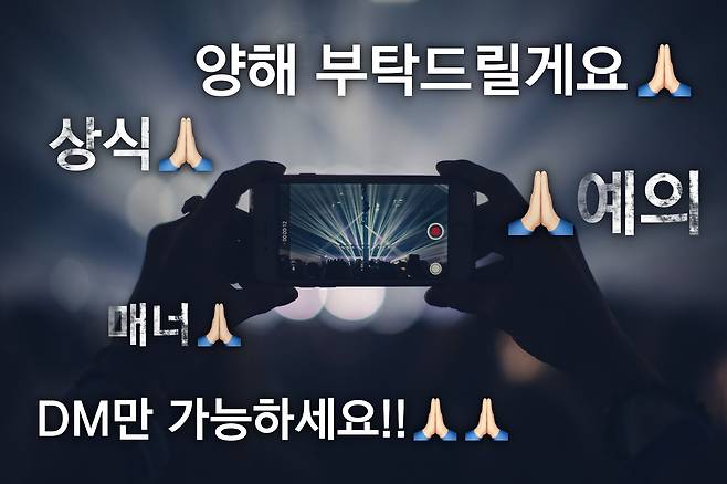 ‘DM(다이렉트 메시지) 문의하실 때 예쁜 인사 부탁드려요. 저는 대답만하는 로봇이 아닙니다. (합장티콘)’