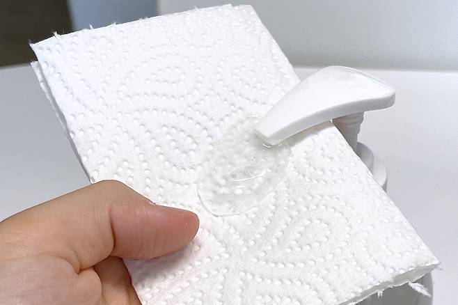 잘 떼어지지 않는 스티커나 찐득거리는 스티커 자국에 손소독제를 묻혀 5분간 방치해 주세요. 그다음에 티슈나 마른 수건으로 닦아주면 끈적임 없이 깔끔하게 스티커를 제거할 수 있습니다.