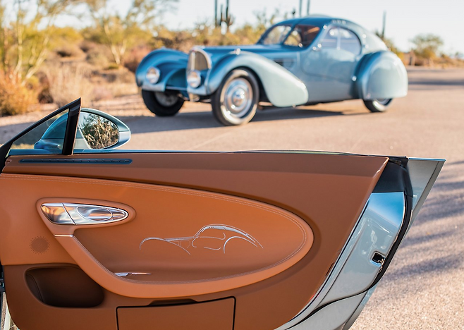 먼저, 차량 외관에는 은빛을 띈 은은한 푸른 색상이 눈에 띄는데, 이는 고객이 자동차 박물관에서 처음 본 타입 57 SC 애틀랜틱에서 영감을 얻어 제작된 것으로 전해졌다.