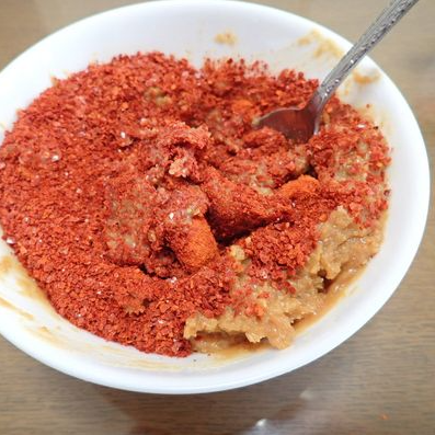 양념장은 이 조림의 맛을 결정짓는 핵심이다. 고춧가루 4큰술, 설탕 2큰술, 진간장 3큰술, 굴소스 0.5큰술, 맛술 2큰술, 참기름 1큰술, 후추를 넣고 고루 섞어준다. 고춧가루는 고기의 비린 맛을 잡고 칼칼한 맛을 더해주며, 설탕과 맛술은 단맛과 부드러움을 함께 준다.