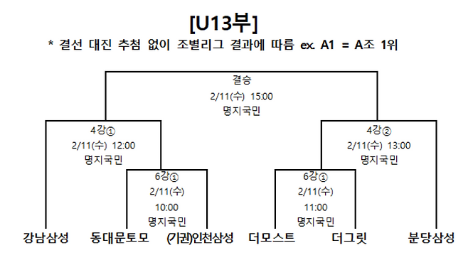 예비 중1들이 펼치는 U13부에선 강남삼성과 동대문토모, 인천삼성, 더 모스트, 더그릿, 분당삼성이 결선에 진출했다.