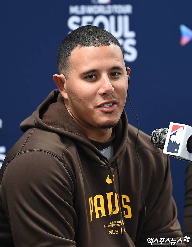 이날 기자회견에 참석한 샌디에이고 매니 마차도가 취재진의 질문에 답하고 있다.