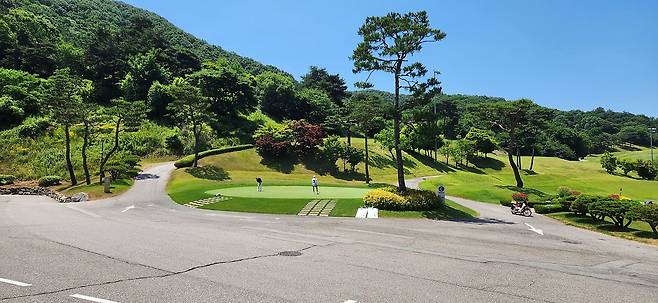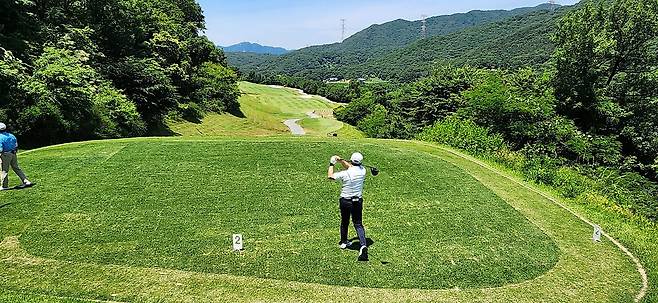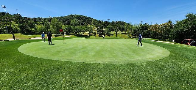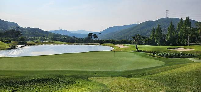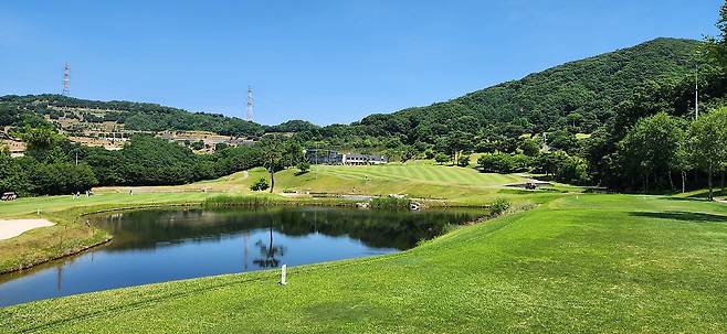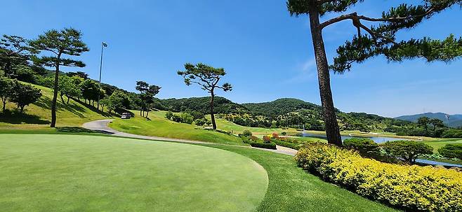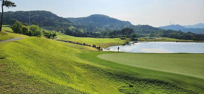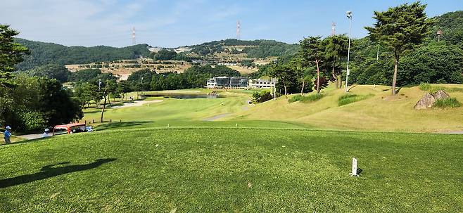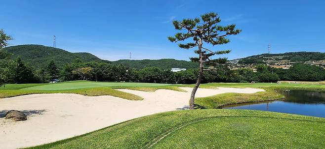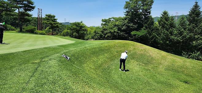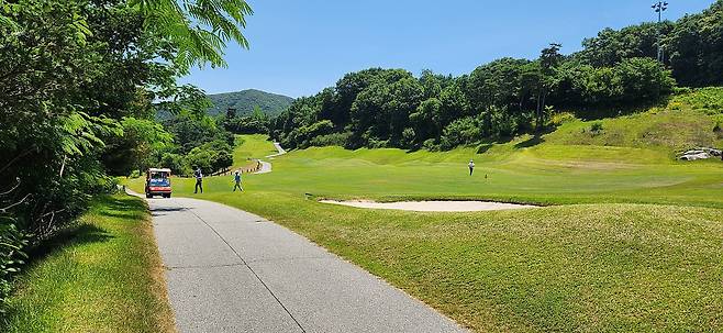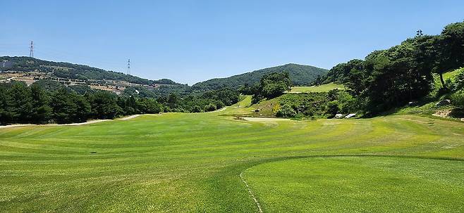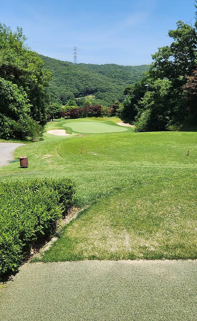 중지 페어웨이 역시 촘촘하게 관리되어서 공이 잔디 위에 잘 올라서있습니다. 당시 장마철 전이었기에 단단한 그라운드와 함께 깊은 디봇을 파내기에는 부상의 염려도 있습니다. 홀과 페어웨이 넓이는 보통이며 양옆으로는 페널티 또는 OB로 구성되었습니다. 러프 길이는 약간 짧게 관리되어 있어서 그다지 어렵지 않았으나, 간혹 그린 주변의 그라스 벙커 및 슬로프가 큰 라이에서는 주의가 필요합니다. 전체적으로 무난한 페어웨이와 러프지만 관리는 상당히 잘돼있는 골프장입니다.
