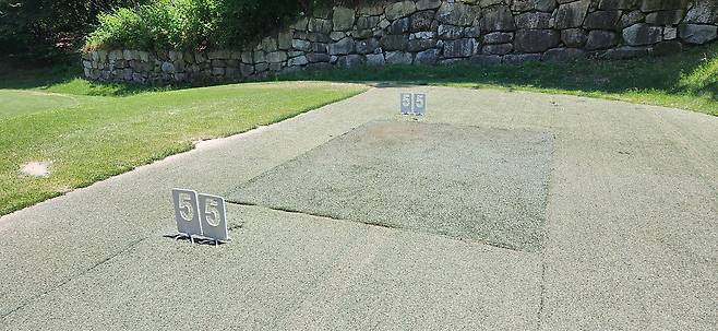 몇몇 티 박스는 전체적으로 잔디를 새로 깔아놓은 게 보였고, 골프존카운티 골프장들에서 자주 볼 수 있는 인조잔디 티 박스도 보입니다. 티 박스에서 대부분 그린이 보이며 고저 차이가 큰 홀들은 거의 없습니다. 저의 느낌으로는 "슬라이스 홀"이 여러 개 보였습니다.