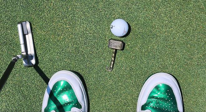 안성H 그린은 대부분 중간 사이즈로 보입니다. 방문 시 그린 속도는 약 2.6이라고 했지만 실제로는 그보다 약간 더 빠르게 느껴졌습니다. 그린 난이도는 얼핏 보면 어렵지 않았고 큰 층으로 나뉘는 부분은 없었습니다. 다만 잔잔한 라이가 생각보다 많아서 숏펏은 나름 신중한 해야 했습니다. 특히, 여기 그린에 대한 만족도가 높았던 이유는 잔디가 매우 촘촘하게 올라와서 공이 본 대로 잘 굴러갔습니다. 그린 주변도 관리가 우수했고 중지 잔디는 볼과 정확한 콘택트를 요구했습니다.