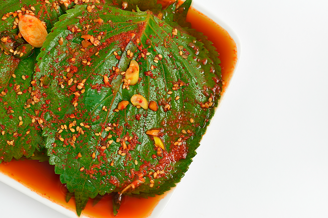 삶은 콩잎에 양념을 켜켜이 발라 숙성하는 방식으로,