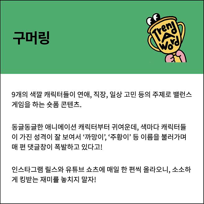 구머링은 이름처럼 9개의 색깔 캐릭터로 구성된 채널이다.