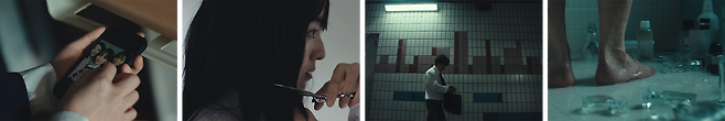 여학생은 함께 찍은 셀카 속 친구의 얼굴을 몰래 확대해 보며, 욕망의 소리를 내뱉습니다. “난 네가 되고 싶어” 금이 간 휴대폰 화면은 마치 균열이 생긴 그녀의 내면을 드러내는 듯하죠. 이후 친구와 똑닮은 모습으로 자신의 머리카락을 잘라 버립니다. 화면은 전환되고, 쓰레기 무덤 속에서 살아가는 회사원의 속마음도 들려오는데요. “이대로도 괜찮을까” 악취를 감추기 위해 향수로 샤워를 하는 그의 모습은 치부를 숨기고 살아가는 인간의 모습을 적나라하게 보여 주는 듯합니다.