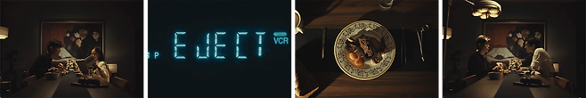 세 번째 시퀀스 <Light does not judge. It only casts shadows. (빛은 판단하지 않는다 그림자만 드리울 뿐)>에서는 의사 박희순이 등장합니다.🩺 벌레가 가득 붙은 수술실 조명은 의사의 오염된 직업 의식을 나타내는 듯한데요. 이어지는 장면인 딸과의 즐거운 식사 자리는 오래가지 못한 채, 수술실 공간처럼 변해 버립니다. 수저는 수술 도구로, 무드 있던 주방 조명은 수술실 조명으로 말이죠. 머리 위로 드리우는 조명으로 인해 의사가 가진 그림자가 선명하게 드러납니다. 그 순간 테이블 위에 놓인 국화꽃과 죽은 사람을 애도하는 액자 속 그림이 눈에 들어오기 시작합니다.⚰️ 앞선 시퀀스 제목처럼 빛은 선악을 판단하지 않으며, 그저 인간 내면의 그림자를 비출 뿐이죠. 그에게는 어떤 치부가 숨겨져 있는 것일까요?