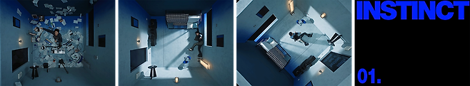 첫 번째로 공개된 영상은 정사각형의 푸른 방을 배경으로 하고 있습니다. 어디가 바닥인지 헷갈릴 만큼 육면에 어지럽게 배치된 가구들이 눈에 들어오는데요. 이어서 바로 너저분하게 아카이빙을 하던 흔적이 드러나는 트랙 ‘00:30’, 중력을 거슬러 우주를 비행하듯 방 안을 이리저리 돌아다니는 ‘비행’, 자유로운 춤사위가 드러나는 ‘Downtown’, ‘Bloodline’까지 총 네 곡의 음악이 눈앞에 펼쳐지죠. 해당 콘텐츠의 키워드는 바로 ‘INSTINCT’인데요. 그 의미처럼 ‘본능적’으로 음악을 즐기게 되는 우즈의 모습을 그려낸 듯하네요!💙