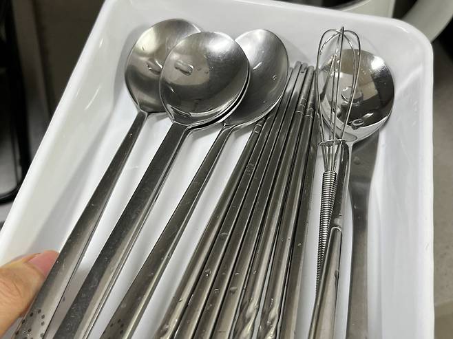 이렇게 소독한 수저 등은 깨끗한 물로 세척한 뒤 물기를 완전히 건조하여 사용하세요.