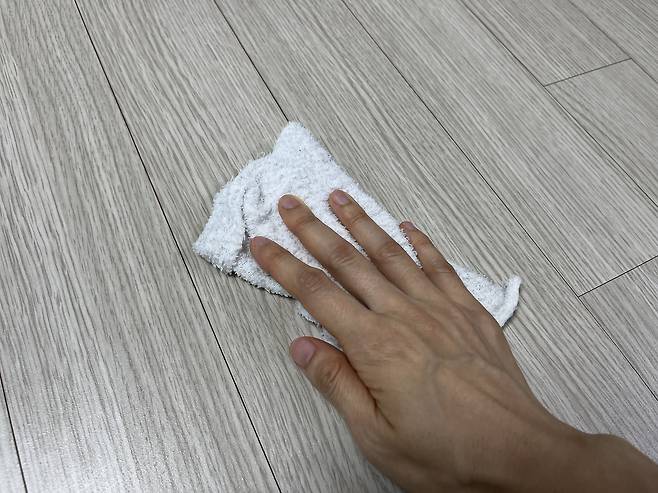 마른 수건으로 바닥을 깨끗하게 닦으세요. 수분이 남으면 다시 눅눅해지므로, 바닥이 뽀송한 느낌이 날 때까지 깨끗하게 닦습니다. 이렇게 식초로 닦아내면 바닥의 끈적이는 현상을 줄일 수 있습니다.