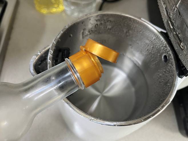전기포트와 식초를 활용하면 수저 소독을 한 번에 쉽게 할 수 있습니다. 전기포트에 물을 1/2 정도 넣고 식초를 2~3스푼 넣고 끓입니다.