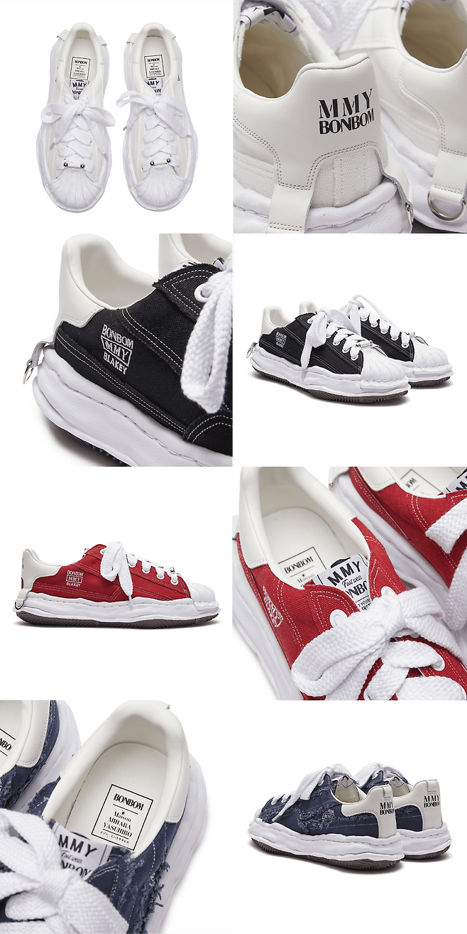 블레이키 스니커즈의 독특한 아웃솔 디자인과 왜곡된 실루엣에 본봄의 시그니처 플리츠 디테일을 더해 실험정신 넘치는 스니커즈를 완성했다. 해당 협업은 두 가지 라인으로 출시될 예정이다. 첫 번째 라인은 코르셋과 가터 디테일을 극대화하며 피어싱 디테일을 추가한 레드, 블랙, 화이트 컬러로 선보인다. 두 번째 라인은 러프한 마감 기법인 "로우 엣지(RAW EDGE)" 를 통해 가터 절개를 극적으로 표현한 후, 피어싱 디테일을 결합한 베이지, 그레이, 네이비 컬러로 구성했다.