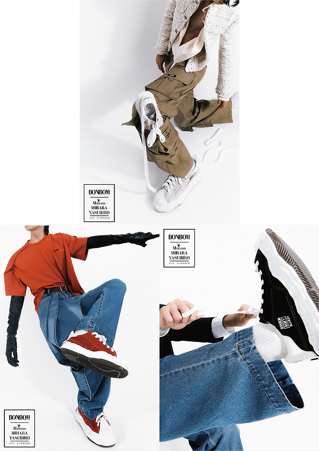 모던 유니섹스 의류를 선보이는 국내 브랜드 ‘본봄(BONBOM)’이 ‘메종 미하라 야스히로(Maison Mihara Yasuhiro)’와의 콜라보레이션을 발표했다. 이번 협업은 두 브랜드의 시그니처 스타일을 완벽하게 융합한 프로젝트로, 각 브랜드의 새로운 비전을 선보이는 협업이기도. 이번 협업은 약 1년간의 디자인 개발 과정을 거쳐 본봄의 2025년 봄 시즌 룩북에서 처음 공개하였다. 디자인 디벨롭은 일본과 한국을 오가며 심도 깊게 진행되었으며, 본봄은 메종 미하라 야스히로 스니커즈의 아이덴티티를 유지하면서도 본인의 시그니처 요소를 섬세하게 접목시키는 데 중점을 두었다. 그 결과 메종 미하라 야스히로의 대표적인 스니커즈 라인 ‘블레이키(BLAKEY)’를 바탕으로 본봄의 디자인 요소인 가터 절개와 ‘코르셋 디테일을 결합하고, 피어싱 디테일을 가미하며 새로운 해석을 시도했다.