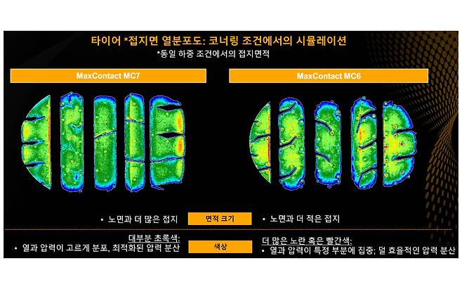 오는 5월께 콘티넨탈의 인기 스포츠 타이어 M6의 후속 모델이 시장에 나온다. 모델명은 맥스콘택트 MC7. 체험에 앞서 오토뷰 시험용 타이어 보관 창고에서 MC6를 꺼내 충분히 감각을 새기는 시간을 가졌다. 관심 많은 후속작의 달라진 점을 확인하기 위함이다. 스포츠 타이어가 가져야 할 기본 성능인 접지력을 기준으로 MC6는 좋은 타이어에 속한다. 경쟁 제품인 미쉐린 파일럿 스포츠 5보다 합리적인 가격을 갖추면서 횡방향(코너링) 접지력은 대등한 수준이다. 우리와 협업한 프로 드라이버 정의철 선수의 서킷 주행 기록만 봐도 크게 차이 나지 않는 랩타임을 보여준다. 그러나 마른 노면과 젖은 노면의 제동 성능에서는 파일럿 스포츠 5가 압도적인 성적으로 우위를 점하고 있다.