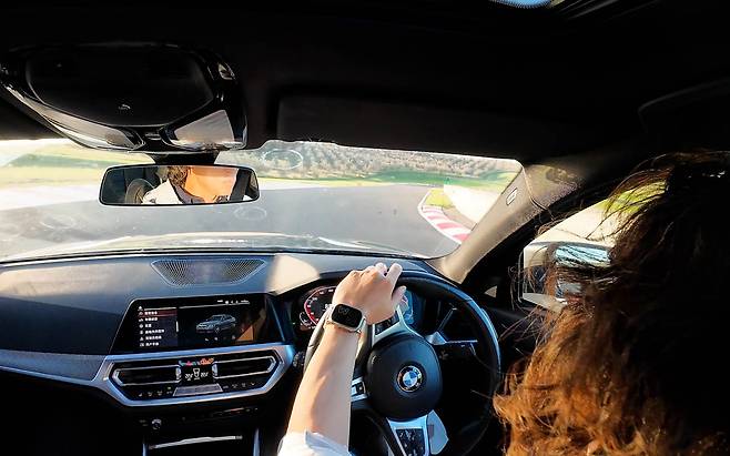 시험용 BMW 330i에는 225/40R19 규격의 MC7이 장착됐는데, DOT(생산일자)는 24년 8번째주차였다. 피트레인을 벗어나 서킷 위로 차를 올리자 가벼운 스티어링 무게감이 느껴진다. 콘티넨탈 타이어만의 결이다. 그러나 스티어링 조작 범위에 따라 점진적으로 증가하는 무게감이라 아쉬움은 없다 전작 MC6와 비교할 때 무게감은 거의 흡사해 보인다. 스티어링을 중앙에 정렬하고 손가락만으로 가볍게 미세한 힘을 줘가며 조향 각을 최소한으로 만들며 타이어의 미세 반응성을 확인했다. 반응 속도 역시 MC6와 유사한 수준인데 상대 비교를 한다면 MC7이 조금 더 민첩한 모습을 보인다.