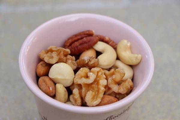 간식: 견과류, 블루베리, 삶은 고구마