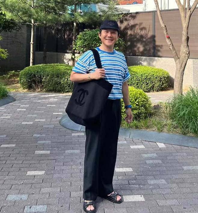 연카키 니트 + 흰 버뮤다 팬츠 + 블랙 로퍼 조합은 댄디&깔끔 그 자체다.