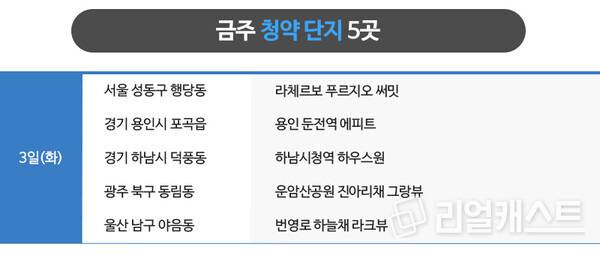 금주 모델하우스는 총 5곳이 오픈 할 계획이며, 이중 1곳은 사이버 모델하우스로만 오픈합니다.