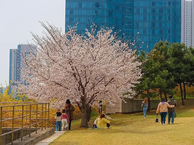 인천을 대표하는 도심 속 힐링 공원이다. 높은 빌딩 숲 사이에 넓게 자리한 잔디밭과 산책로가 있어, 봄이면 벚꽃과 함께 세련된 도심 풍경을 한꺼번에 즐길 수 있다.