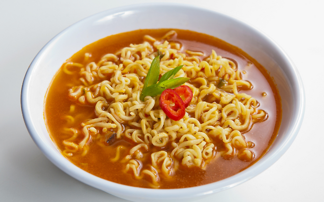 라면은 간편하고 맛있지만, 나트륨 함량이 매우 높아 혈압 상승과 심혈관 질환 위험을 키울 수 있습니다.